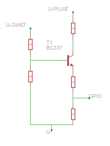 Moin Community, ich hab zwar eigetnlich Ahnung von Elektronik, allerdings schon zu lange aus dem Thema raus. Ich möchte gerne einen Raspberry Pi im Auto verbauen. Dazu möchte ich überprüfen ob der Motor läuft oder nicht (Zünd-Plus Ja/Nein). Das Signal am Raspberry Pi sollte nicht größer als 5V sein, daher habe ich mir gedacht (zur Sicherheit) bastel ich einen Transistor vor. Um die ganze Sache möglichst einfach zu machen, hab ich kurzerhand den angehängten Aufbbau gemacht. Alle Widerstände habe ich kurzerhand mit 10k dimensioniert. U-Plus und U-Zünd sind 12V bzw. U-Zünd natürlich auch 0V wenn der Motor aus ist. Kann ich das so machen oder durfte man am Emitter nichts anschließen? Ich brauch ja nur ein Signal für die Steuerung, also keinerlei Belastung oder sonst was. Müsste ja dann der Transistor eigentlich ab können.