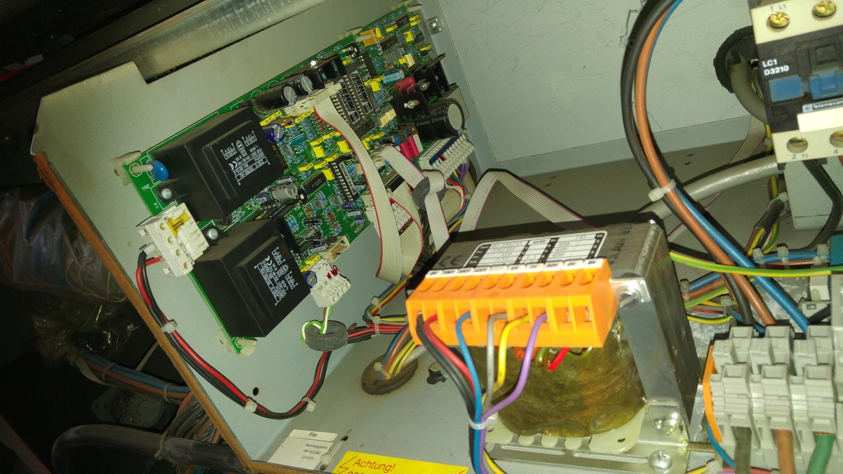 Als erstens die Printtrafos auf den Platinen überprüfen,ob Spannung sekundärseitig heraus kommt.Ebenso den Steuertrafo. Doch Vorsicht da Netzspannung anliegt. Bei mir hatte sich ein Printtrafo gemein verabschiedet.(Mal Funktion.mal keine)
