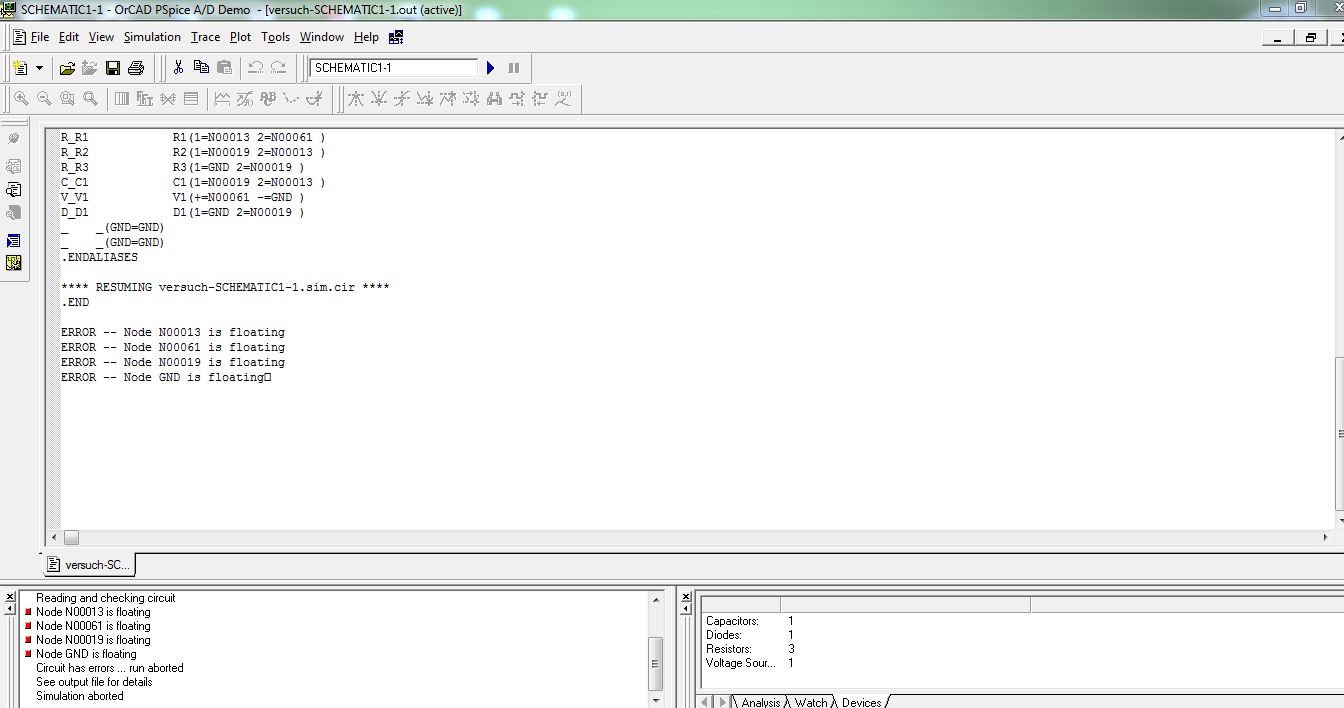 hallo zusammen, könnt ihr bitte helfen. ich wollte eine Schaltung mit Pspice simulieren. leider klappt nicht mit der Simulation Danke im Voraus