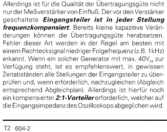 Klaus R. schrieb: > Im verlinkten Bild eines Tastkopfes siehst Du eine kleine > Schlitzschraube. Damit gehst Du auf das Testsignal und stellst den > Rechteck sauber ein. Fertig. Ja. Diese Prozedur ist bekannt. Schon beim HM307 war das so und davor. Mein erstes HM307 hatte ich 1978. Damals schon stellte man das so ein. Nur steht eben auch in den Handbüchern schon seit mehr als 30 Jahren der obige Text. Und es gibt auch Bilder mit der Lage der Trimmer im Teiler. Damit ist ein Abgleich möglich. Die Trimmer des Teilers beim HM312 waren durchnumeriert von C1 bis C11. C1 ist dabei die Eingangskapazität. Die muss erst mal stimmen. Sonst macht der ganze Rest keinen Sinn. Daher sollte man sich überlegen wie man erst mal brauchbar C1 einstellt bevor man den Rest angeht.