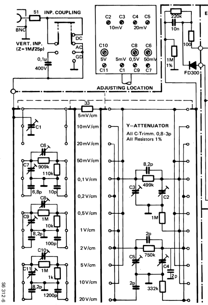 Peter R. schrieb: > Da hats > fast für jeden Widerstand der als PI-Glied ausgeführten Teiler einen > dazugehörigen kapazitiven Trimmer. Danke Peter ! Hier ist der Plan des HM312 der das genau zeigt - einschließlich des Lageplans der Trimmer oben in der Mitte.