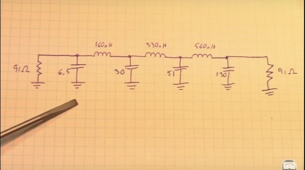 Das ganze Ansinnen zeugt von (mindestens) Blauäugigkeit. Ein Kondensator von 6.5pF? Den realisiert der Praktiker als Leiterzug über der Groundplane. Und auch für die anderen Bauteilwerte gilt, daß der praktische Aufbau ganz entscheidend für Erfolg oder Mißerfolg ist. Filter dieser Art aus Normwerten aufzubauen, ist eine höchst diffizile Angelegenheit, die man nur für die Serienproduktion macht und bei der entweder Spezialsoftware für die Analyse des Layouts zum Einsatz kommt oder entsprechend viele Versuche gemacht werden. Für ein Einzelstück würde man die Spulen aus Kupferlackdraht wickeln und dann durch gezieltes Deformieren abgleichen und die Kondensatoren aus Standardwerten parallel schalten. Funktioniert natürlich nicht ohne die passende Meßtechnik.