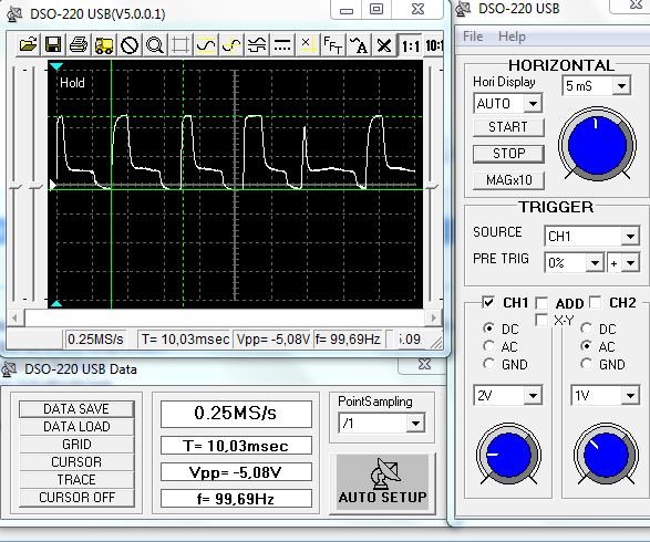oszi schrieb: > Kannst Du das Oszi auch richtig bedienen? > Wo ist denn die "0"? Ich habs so getriggert, das es bei der positiven Flanke anfängt, vielleicht bei 200 V. Logischerweise sind die 0 V davor also nicht zu sehen. Ich bekomme bei meinen Kawasaki 4 Zylindermotor in 1000 U/min ca 16 Signale pro Sekunde an einer Zündspule. Eine Periode ist also ca 62 ms lang. Wohlgemerkt die Periode, das eigentlich interessante Signal ist nur 1,5 ms lang. D.h ich habe 60,5 ms lang 0 V. Wenn ich die Zeitachse jetzt kleiner mache, um mehr Signale aufzuzeichnen damit man die 0 V vor einen Signal sieht, sehe ich vom Signal aber nichts mehr.. Die Frequenz ist einfach zu gering im Standgas. Wenn man das dennoch einstellen kann, bin ich über ein Tipp dankbar. Das Auswerten des Stromes ist ein guter Tipp. Ich werde mich damit beschäftigen aber mir vorher die Sekundärseite mal anschauen. Nases Danke für den Link!