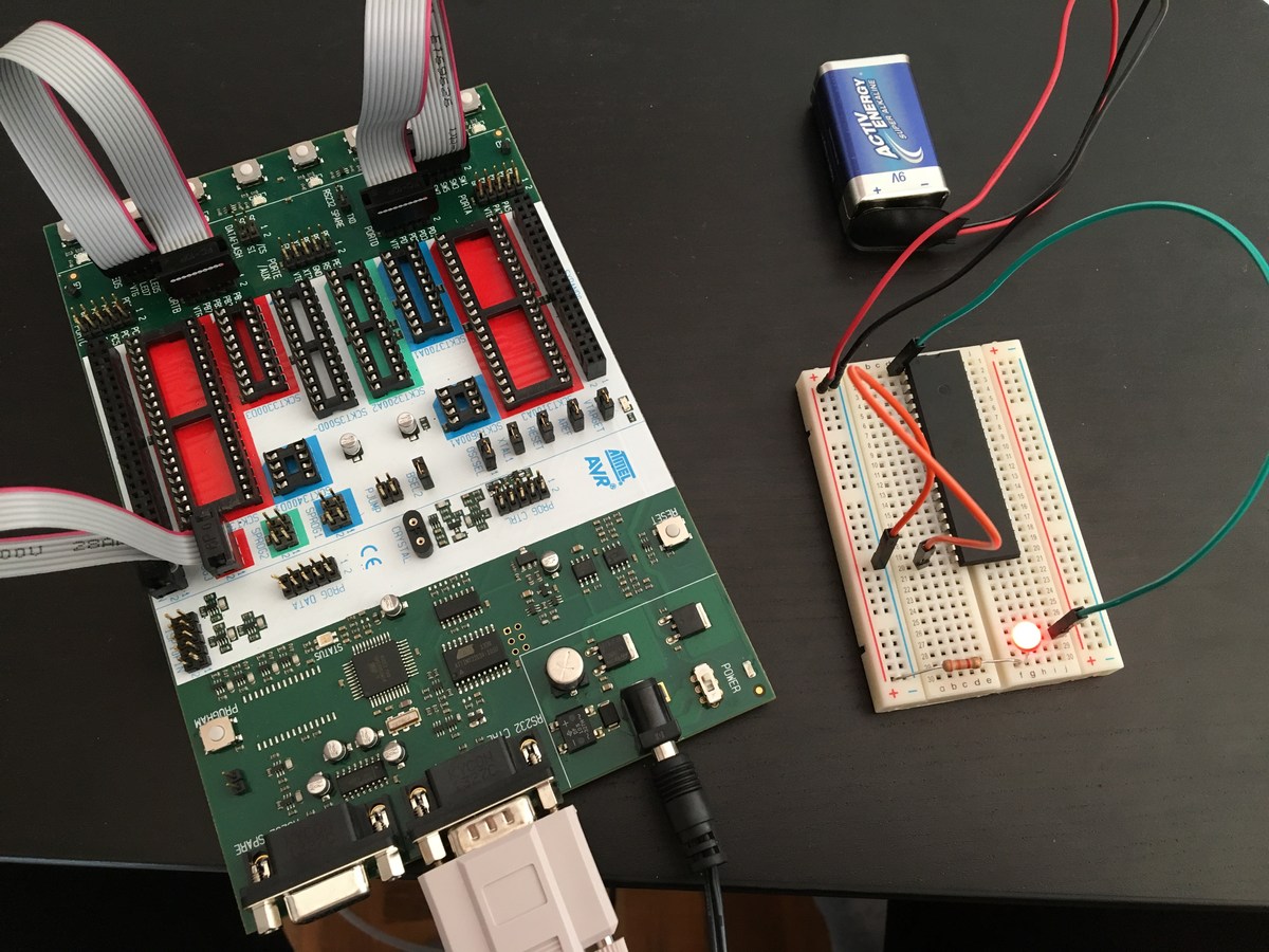 Hallo zusammen, schon seit einger Zeit lese ich in diesem super Forum still mit. Ihr habt mir auch schon oft weiter geholfen. Doch aktuell bin ich auf ein Problem gestoßen, worauf ich noch nirgends eine Antowrt gefunden habe. Ich versuche derzeit eine einfach Pulsweitenmodulation bei einer Diode mit einem ATmega8515. Diese funktioniert auch einwandfrei auf meinen STK-500. (Code entwickel ich in Atmel Studio 7) Doch immer wenn ich den Mikrocontroller auf mein Steckbrett setze und an den Strom anschließe leuchtet meine Diode gleich hell. Das selbe Phänomen habe ich auch wenn ich eine Diode mit "delay" zu blinken bringen will. Funktioniert auf dem STK-500 super, auf dem Steckbrett läuchtet sie einfach durch. Über schnell Hilfe von Euch würde ich mich sehr freuen. :) (Warnung ich bin nur Softwareentwickler und habe wenig Ahnung von Elektrik) Viele Grüße Daniel