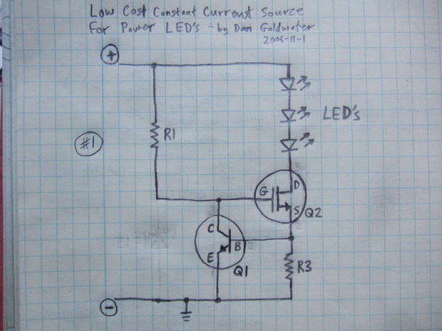 Mahlzeit, Ziel: 1W Led ansteuern. Habe hier nicht so das Gelbe vom Ei gefunden, jedoch auf google etwas was mir weiter hilft: http://www.instructables.com/id/Power-LED-s---simplest-light-with-constant-current/ LED: P: 1 Watt U: 3,2 - 3,6V I, Berechnet: 310mA So, nun zu meinem "Problem", habe jetzt als Mosfet(Q2) den "IRFZ44N" ausgesucht. Und als Transistor(Q1) den "BC549C" Sollte soweit Passen?! Als Widerstand(R3) würde ich ein 1,8Ohm 1W Widerstand nehmen, wären dann 277mA bei 3,2V die durch die Led fließen. Laut Website: (R3 = 0,5V/300mA = 1,6 Ohm, E-Reihe: 1,8 Ohm)Leistung dann mit 3,2V*277mA = 0,8W. Demnach ist R3 = "1,8 Ohm - 1 Watt" Nochmal eine Frage am Rande, woher kommen die 0,5V? Spannungsabfall vom Transistor?