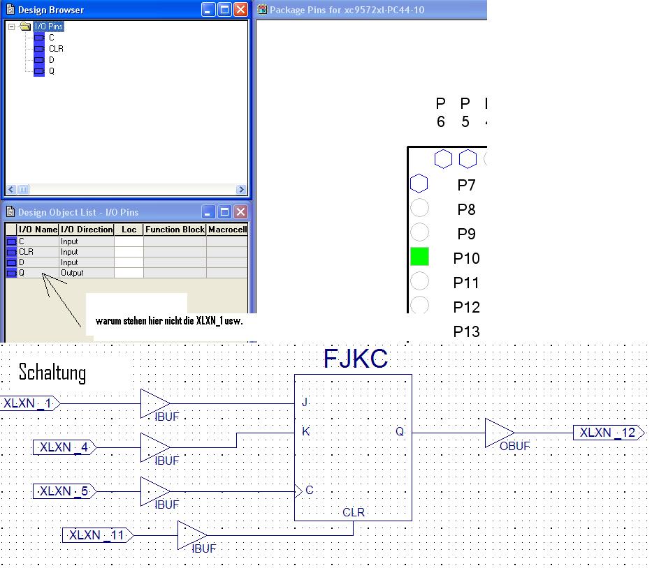 @FPGAküchle: sorry das waren nicht xilinx_xx sondern diese Pads mit XLXN_1... wenn nur Logik in einer Schaltung verwendet wird (und, oder usw.) dann erscheinen im "assign Package pins" diese Anschlüsse XLXN_1 usw. warum nicht wenn ich ein FF einfüge? Na ja wenn, dann muss ich das so machen wie du oben beschrieben hast, so mit tippen mein ich...