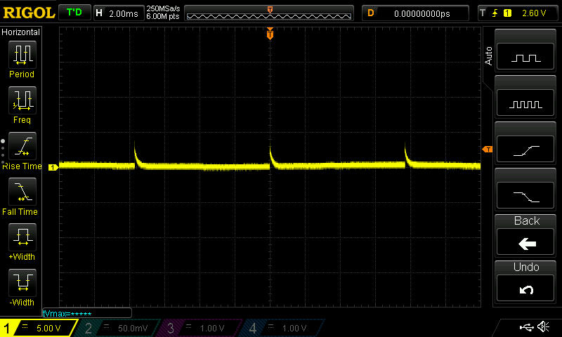 für mich sieht das Foto preview image for DS1Z_QuickPrint5.jpg DS1Z_QuickPrint5.jpg aus dem ersten Beitrag nach wie vor so aus, als sei der AD-Wandler des Oszillografen hoffnungslos übersteuert. Die vielen feinen Ausreißer auf der waagrechten Linie sprechen sehr dafür. Ralph Berres