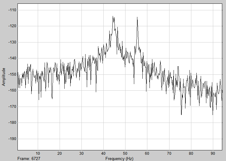 Hallo, ich bin mit einem Signalverarbeitungsproblem konfrontiert und möchte Euch um Ratschläge bitten. Wie in dem Titel beschrieben, möchte ich eine Sinus Störschwingung mit variabler Amplitude und Frequenz unterdrücken bzw. komplett beseitigen, deren Werte sich über die Zeit i.V. zum Nutzsignal langsam verändern. Den beispielhaften Frequenzgang hab ich im Anhang beigefügt. Dabei sieht man einen breitbändigen Nutzsignal-Frequenzgang, mit Eigenfrequenz bei ca. 45 Hz, und gleichzeitig ein Störsignal bei ca. 55 Hz. Weißt Ihr wie man so eine Störschwingung schnell erkennen und anschließend beseitigen kann? Ich hab schon mal im Internet recherchiert, aber auf eine klare Richtung bin ich leider nicht gekommen. Dank vielmals.