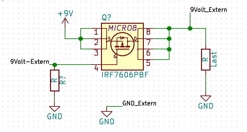 Hallo, folgendes Problem: Ich habe eine Schaltung, die mit 9V aus einem 9V Block betrieben wird. Zusätzlich würde ich gerne ein Netzteil, ebenfalls mit 9V, einstecken, ohne dabei die Batterie trennen zu müssen. Der Wunsch ist, das die Schaltung an sich weiterläuft, ohne dass es zu Unterbrechungen, Kurzschlüssen oder defekte Batterien kommt. Ich habe eine gedachte Schaltung angehängt. Dabei ist 9V die Spannung der Batterie und 9Volt_Extern die Spannung des Netzteils. Kann das so funktionieren? P.S. den Widerstand auf GND hab ich vergessen, sollte so 100k sein.