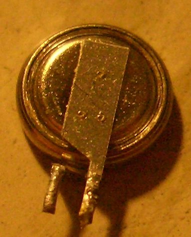 sollten die drei dunklen Punkte auf dem Blechstreifen-Halter keine Punktschweisspunkte sein gehe ich von einer stinknormalen Stützbatterie aus, wie sie in jedem PC vorkommt