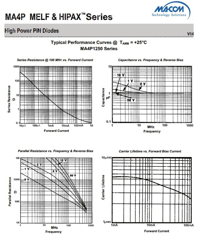 Hallo Bernd, und Forum, ... Habe gerade ein Problem meinen Beitrag zu posten - Server nimmt diesen nicht an ? :-( ... falls noch nicht bekannt. Interessante Lektüre zu PIN-Dioden. https://www.ieee.li/pdf/essay/pin_diode_handbook.pdf Kannst Du bitte begründen, warum es keinen Sinn macht unter 1 Ohm zu gehen. Erst bei 0,5Ohm wird das Sendesignal um 40 dB unterdrückt. Möglicherweise verträgt der mcHF am Eingang auch 10mW, (30dB Att) aber ob das bereits grenzwärtig ist was den HF-Eingang angeht kann ich nicht mit Bestimmtheit sagen. Die 10 bis 15 dB Verstärkung der Vorstufe langen aber bereits um den Transistor und den DSP in die Begrenzung zu fahren. Um die 0.5 Ohm zu bekommen wären die 50mA erforderlich (z.B. für die MA4P1250-1072T Diode). Wie sieht es mit der Dämpfung bei Empfang aus? Der Empfänger sollte durch den TX/RX-Switch nicht taub werden. Danke für Deine Geduld und Erläuterungen. Gruß Markus DL8MBY