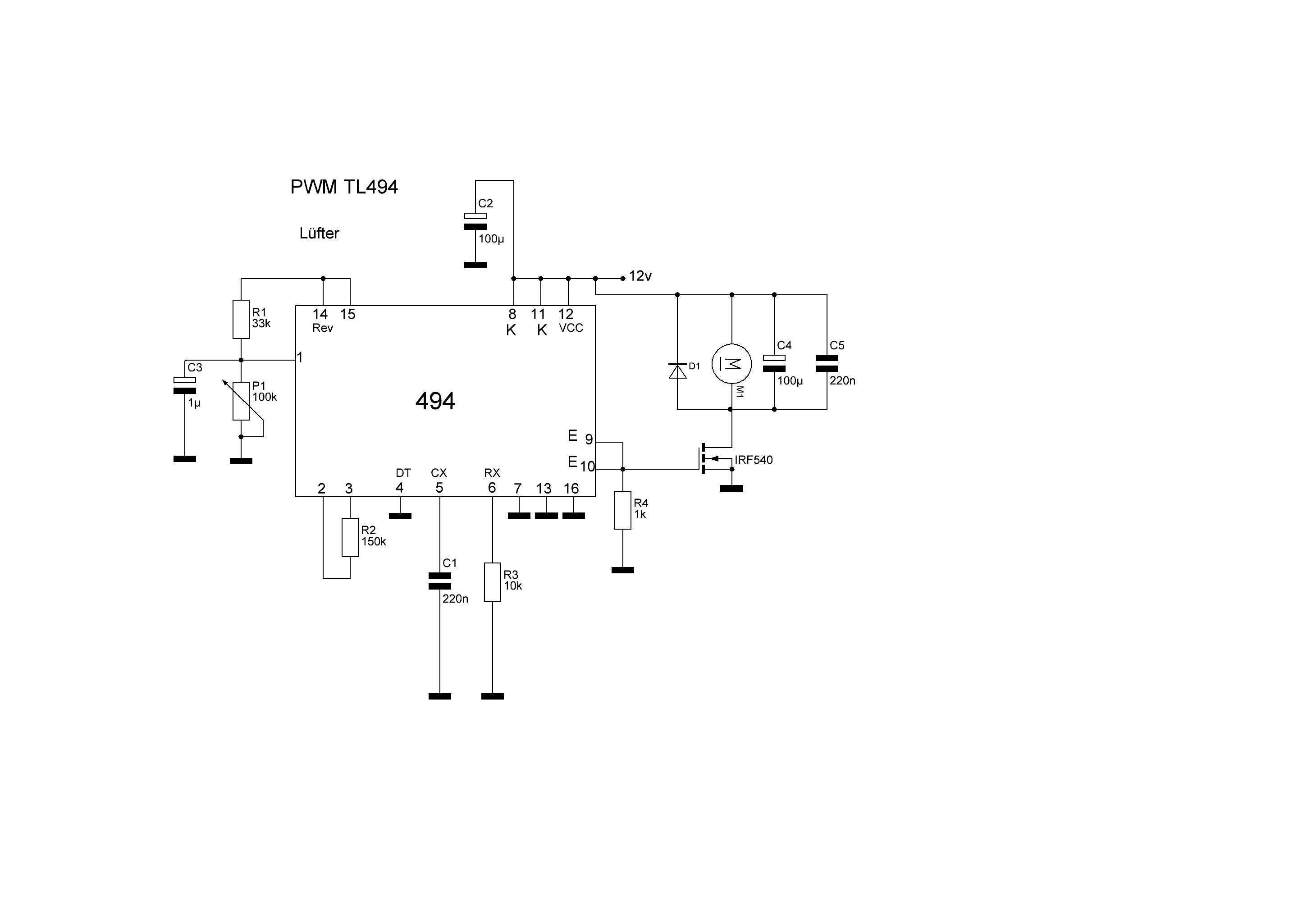 Sebastian schrieb: > Für jeden Hinweis bin ich dankbar. falscher ic. nimm nen tl494 der ist für sowas geschaffen worden. ich nutz den um damit 12v lüfter oder halogenlampen zu dimmen. funktioniert ohne probleme c1 und r3 sind für die pwm frequenz zuständig und sind anzupassen. mit p1 wird eingestellt. c3 sorgt für nen anlaufimpuls für den motor beim zuschalten der betriebsspannung. mfg