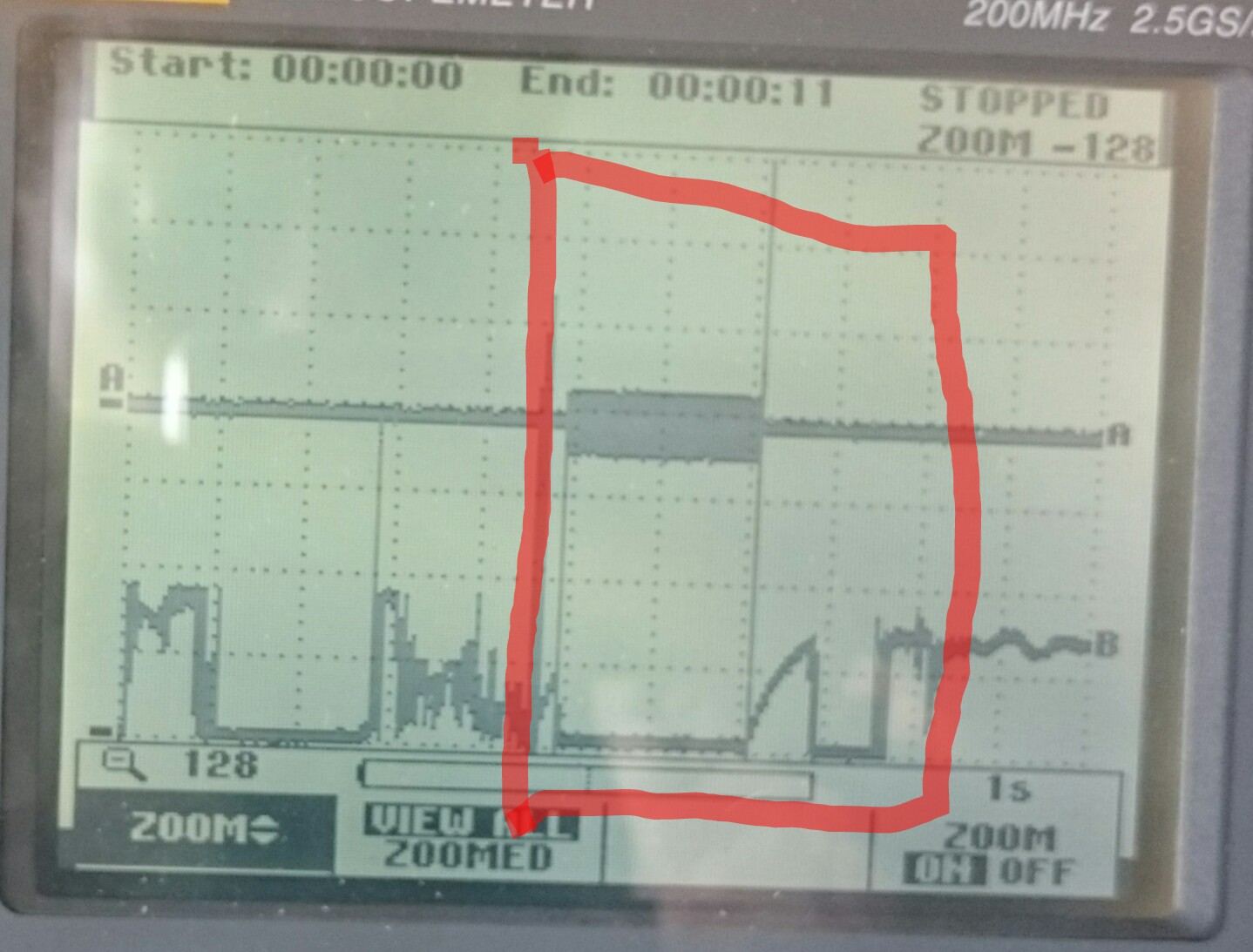 Nur so als Frage - was ist was???? Welche Pegel werden an A/B erreicht. Vielleicht sollte man mal das Eingangssignal aud die Reaktion am Ausgang auf A und B messen. Ich kann so erst mal nichts mit dem Signalverlauf anfangen. Gruß TK