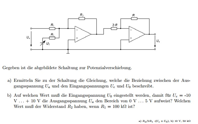 Peter92 schrieb: > Ich lerne für eine Klausur, Dann schaue mal in deinem Vorlesungsskript nach. Dort stehen so Dinge drin wie: Ua = -Ue * R2/R1 für invertierende OPAs. Und sicherlich findest du auch Gleichungen für einen Summierverstärker - der erste ist nämlich so einer.