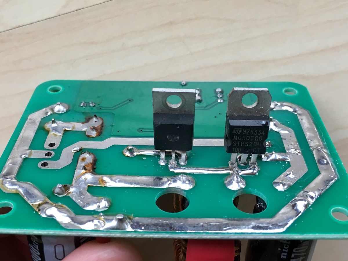 Hallo, ich habe mir vor einiger Zeit ein Ladegerät aus zwei 600W StepUp Convertern gebaut, die 12V Eingang auf eine beliebige Ausgangsspannung bringen. Aus unerklärlichen Gründen hat eines der beiden Converter nun den Geist aufgegeben. Im Grunde könnte ich für 15€ ein neues Modul kaufen, aber viel interessanter wäre, was kaputt gegangen ist. Habe zwei Fotos angehangen. Eingangsspannung 15V, Ausgangsspannung 0V. Hat jemand eine Idee? Gruß und Danke