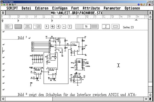 Thomas S. schrieb: > Bei mit als ATARIaner ... > Falls Du mal Lust hast, guck mal hier rein: > http://www.elektronik-kompendium.de/public/schaerer/index.htm#atari Ich freue mich auch immer, wenn ich den Atari-Zeichensatz im ELKO sehe. :) Hier ein STEEM-Screenshot von meiner Physik-Facharbeit 1990. Ein HAMEG war vom Budget her unerreichbar, deswegen hatte ich mir ein Speicher-Oszilloskop für den Atari ST gebaut. Eckdaten: - ADC Ferranti ZN428, 8bit, mit vorgeschaltetem 2 Kanal Mux 4051 und LF398 Sample und Hold - Anschluss an ROM-Port - Sampling per Assembler-Schleife - bis zu. 74000kS/s Eine Entwicklungsaufgabe (wollte man sowas überhaupt noch entwicklen und nicht bei Ebay fertig kaufen), die heutzutage mittels Internet in wenigen Tagen zu lösen ist, hat mich damals einige Monate begleitet. Allein schon der Aufwand, um an die notwendige Hardware-Doku zu kommen...