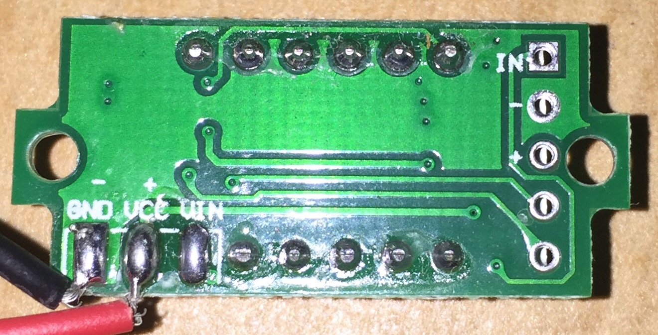 Hab genau das eben probiert, Max, aber ab 31 Volt leuchten die drei mittleren Balken, auf den IN reagiert es garnicht, hab 4V an VCC und 15v an IN geklemmt aber es werden nur die 4V angezeigt, ist wohl intern nicht verschaltet(?). Naja, nicht 100%ig, aber 110% dafür, dass es geschenkt ist, selbst wenn man keinen Euro pro Stück zahlt. Hatte eben Zweifel, ob mir das Ding nicht abfackelt.