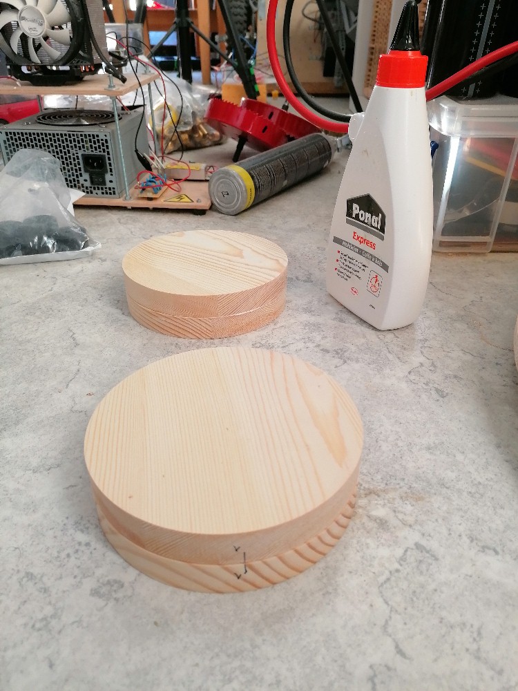 Wie angekündigt habe ich heute noch das schwere Metallgehäuse der Festplatte entfernt, um die wirkenden Drehmomente aufgrund der Schwerkraft zu reduzieren und es dadurch dem Kreisel leichter zu machen. War ein wenig schwieriger als gedacht. Die Hauptplatine und der brushless-Motor besitzen je 4 Anschlusspads. Also einfach verbunden und den Motor wieder unter Spannung gesetzt. Er lief aber nicht richtig an, sondern ruckelte. Also dachte ich zunächst, ich habe eines der Pads "zerstört". Daher die Kabel nicht an den Motorpads, sondern direkt an die sehr dünnen Motorkabel angelötet. Ergebnis: Motor spinnt nach wie vor. Dann dachte ich mir, es könnte an den fehlenden Speicherscheiben liegen. Also diese montiert und... ...Motor läuft wieder wie erwünscht hoch. Alles wieder zurück in die Holzbox und einen finalen Test gestartet. Mit dem Ergebnis bin ich nach wie vor nicht zufrieden, aber die Holzbox kippt nun eine Spur langsamer. Damit ist dieses Projekt für mich abgeschlossen. Ich möchte nicht weiter Zeit und viel Geld in einen richtigen Kreiselkoffer investieren. Vielleicht übernimmt ja einer der Leser. Solche Projekte würden dem Forum hier mehr als gut tun da totale Flaute auf diesem Gebiet... @Jack: Danke für den Kommentar. Mir ist schon bewusst, wie es (viel besser) funktionieren könnte. Aber dazu bräuchte es einen starken Motor mit Steuerung (ca. 100 Euro), einen gedrehten, sehr gut ausgewuchteten Drehkörper (ca. 150 Euro) usw. Das alles will ich nicht investieren. Ich stecke so schon mehr als genug in meine Physikprojekte. Ich trachte auch immer nach einer möglichst einfachen und günstigen Umsetzung. Dieses mal gelang mir dieser Ansatz leider nicht... Mehr Informationen inkl. kurzem Video: https://stoppi-homemade-physics.de/kreisel/