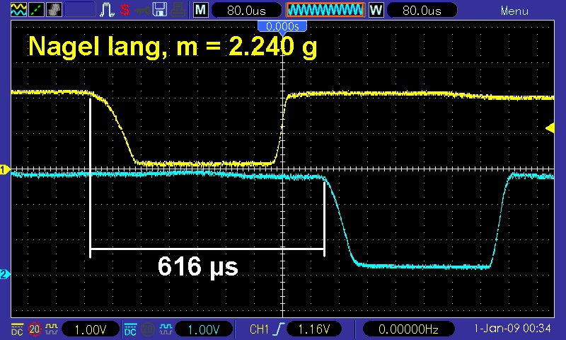 Christoph E. schrieb: > Bei der zweiten Messvariante verwende ich ja keinen OPV, sondern nur > einen gewöhnlichen shunt + Oszi. Was der richtige Ansatz ist, wozu will man da etwas verstärken? So ein Golddraht sollte ja fast ein idealer Schalter sein. Bis auf die quantenmechanischen Effekte... An deiner Stelle würde ich mir auch noch ein gutes gebrauchtes analoges Oszilloskop zulegen.