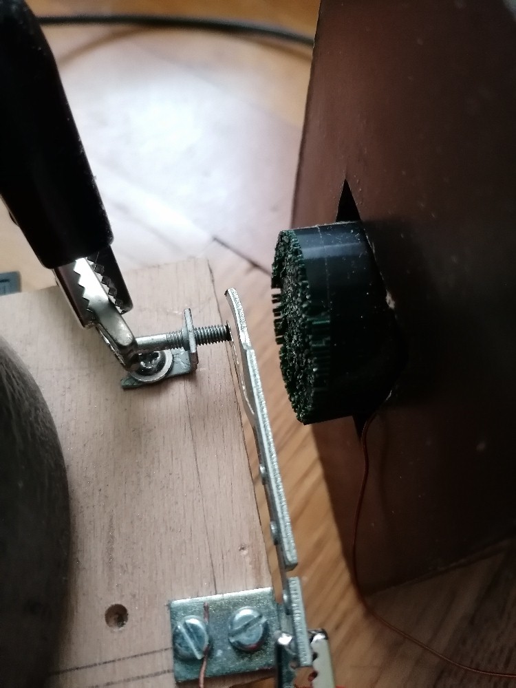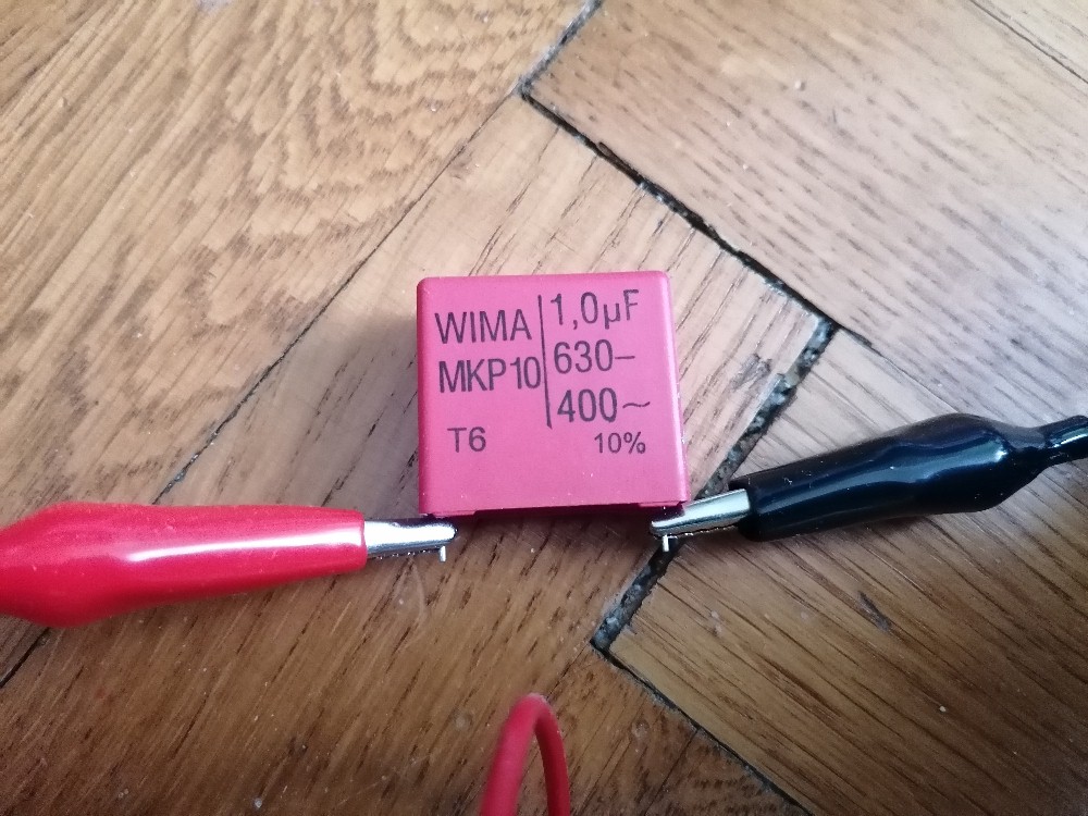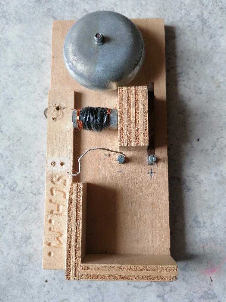 Ich habe ja bei elektronischer Unterbrechung die Spannung meines Funkeninduktors mit meinem Billigsdorfer-Oszi überprüft und Amplituden um die 60 kV erhalten was natürlich völliger Blödsinn ist. Heute habe ich dann alles mit dem mechanischen Unterbrecher (Wagnerscher Hammer) aufgebaut und gemessen. Ich komme auf Spitzenspannungen um die 10 kV. Ob das für Funken reicht? Dem bin ich natürlich gleich nachgegangen und habe eine einfache Funkenstrecke aufgebaut. Zu meiner Freude konnte ich Funkenüberschläge mit einer Länge von ca. 1 cm beobachten, was eben ziemlich genau den gemessenen 10 kV entspricht. Der Output ist jetzt nicht gerade imposant, aber ich bin dennoch sehr zufrieden, dass meine Idee mit der fertigen HV-Trafospule funktioniert. Man darf nicht vergessen, dass richtige Funkeninduktoren rund 80 000 - 120 000 Sekundärwindungen besitzen, meine Spule "nur" 15 000. Für den Wagnerschen Hammer hatte ich zum Glück einen Klingelbausatz zuhause. Diesen bekommt man für wenig Geld zum Beispiel hier: https://www.winklerschulbedarf.com/de/i/klingel-per-stk-100550 Parallel zum mechanischen Unterbrecher habe ich einen impulsfesten MKP10 Folienkondensator von WIMA mit 1µF/630V geschalten, welcher die Funkenbildung eindämmen und die Unterbrecherwirkung verbessern soll. Damit kann ich auch dieses Projekt mit einigermaßen ruhigem Gewissen abschließen, Heureka... Link für mehr Informationen: https://stoppi-homemade-physics.de/funkeninduktor/