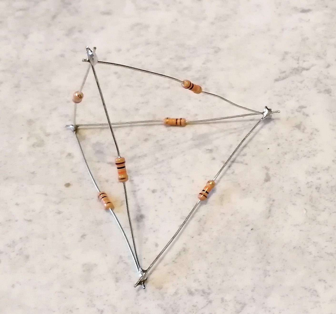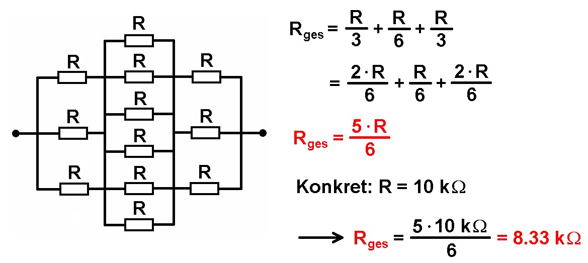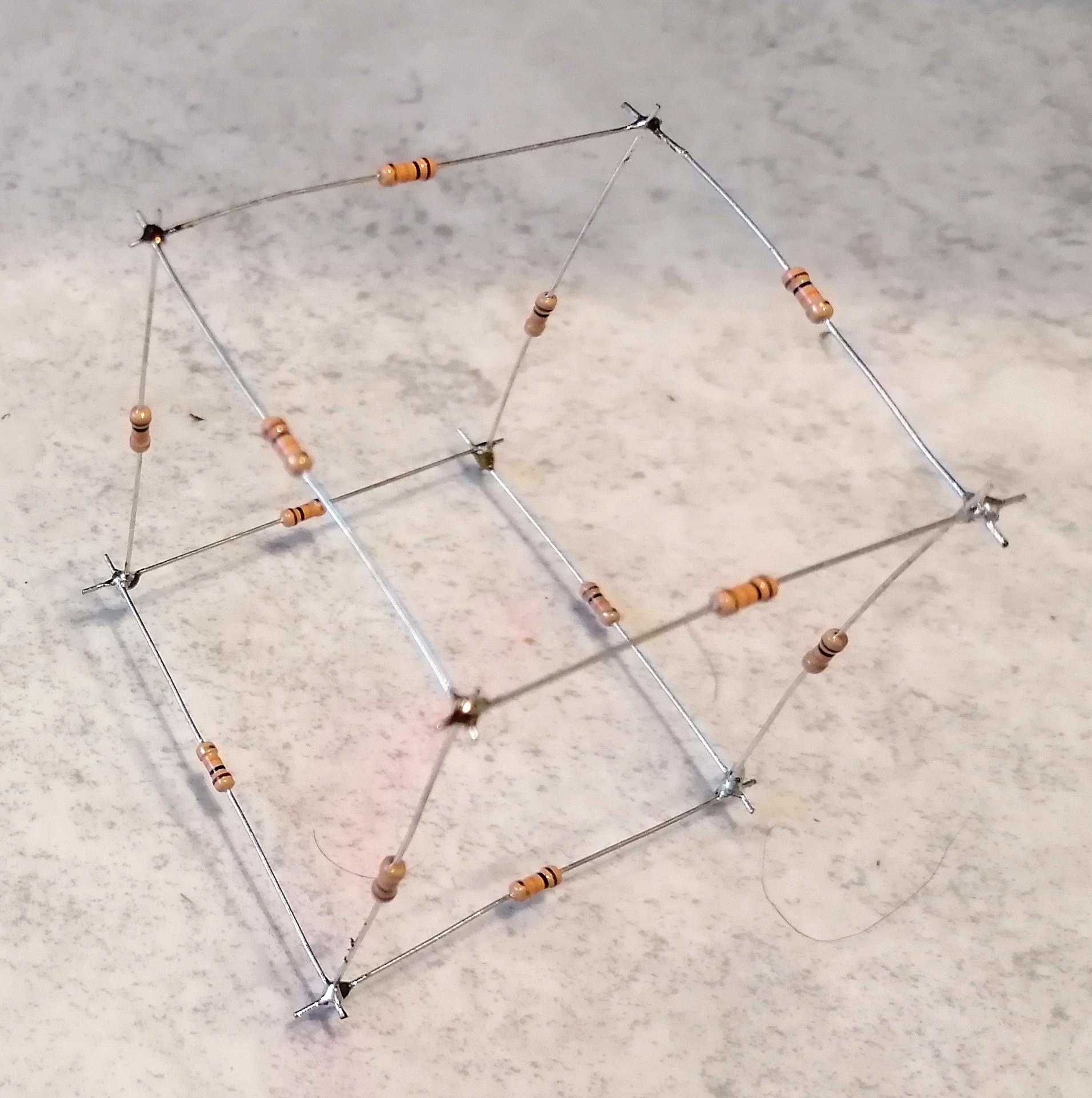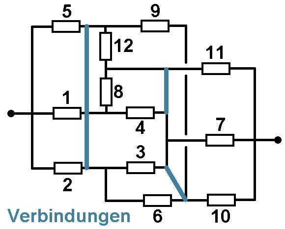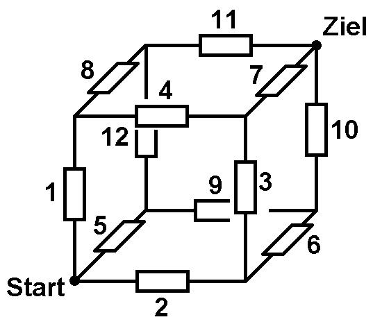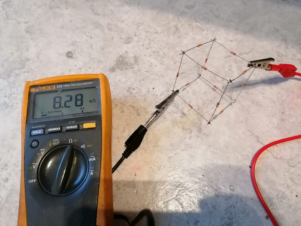 Folgendes Experiment eignet sich sehr gut fürs Physiklabor bzw. Leistungskurse. Es regt nicht nur das Denken an, sondern die Schüler müssen auch handwerklich ran und löten. Es geht um mit gleichen Widerständen R gelötete geometrische Körper, konkret um Tetraeder und Würfel. Die Schüler sollen dann den Gesamtwiderstand zwischen zwei beliebigen Punkten mit dem Multimeter messen. Wieviele prinzipiell verschiedene Messpunkte gibt es bei Tetraeder und Würfel? Ich erhalte für R = 10 kOhm beim Tetraeder einen Gesamtwiderstand von ca. 5 kOhm. Zeichnet man den Schaltplan, erkennt man, dass es sich nicht um eine "schöne" Serien- und/oder Parallelschaltung handelt. Aber mit etwas Nachdenken erkennt man eine Symmetrie, aufgrunddessen über einen Widerstand kein Strom fließen kann. Entfernt man diesen, vereinfacht sich der Schaltplan signifikant und der Gesamtwiderstand kann leicht hergeleitet werden. Es gilt: R_ges = R/2. Beim Würfel sind die Verhältnisse komplexer. Betrachten wir die beiden Messpunkte an den Enden der Raumdiagonale. Auch hier erkennt man aufgrund von Symmetrien, dass jeweils 3 Punkte auf demselben Potential liegen müssen. Daher können zusätzliche Verbindungen zwischen ihnen eingefügt werden, ohne die Schaltung zu verändern. Danach hat man wieder einen leicht lösbaren Schaltplan. Ergebnis beim Würfel: R_ges = 5 * R / 6. Mehr Informationen: https://stoppi-homemade-physics.de/experimente-mit-widerstaenden/