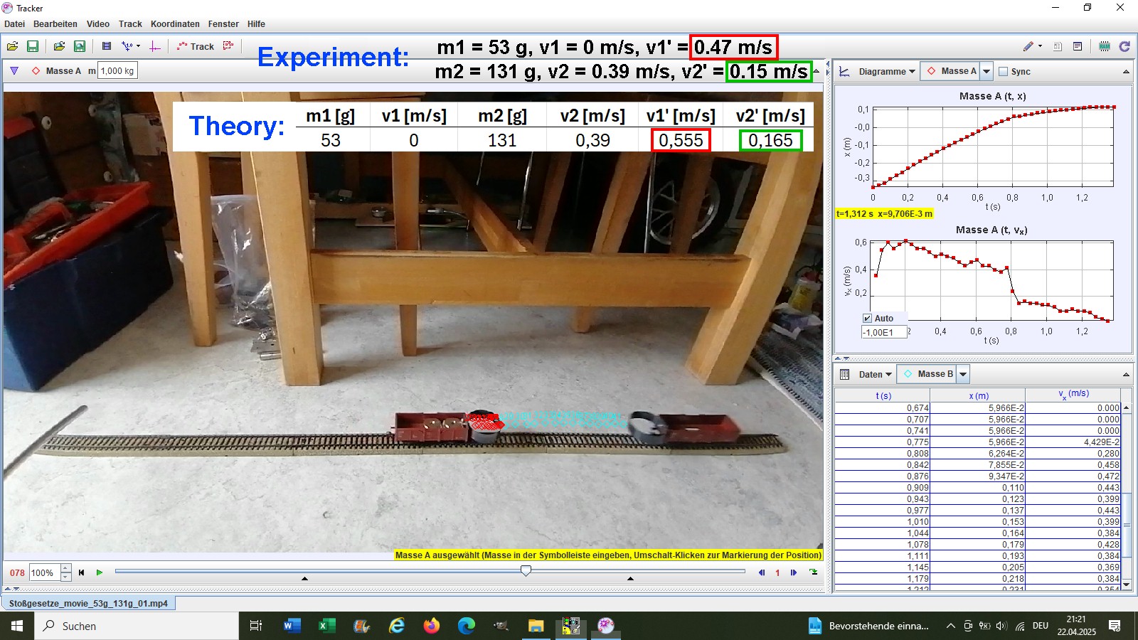 Zitat: "Ein Proton wird in der Regel nicht durch zwei rote und zwei blaue Kugeln dargestellt, und der Atomkern von Gold besteht aus sehr viel mehr roten und blauen Kugeln, als im Bild." @Jack: Fallst du es nicht wissen solltest, das Rutherford-Streuexperiment wurde nicht mit Protonen, sondern mit Heliumkernen welche aus 2 Protonen und 2 Neutronen bestehen durchgeführt. Habe ich auch so bei 0:11 meines Videos angeführt. Und wenn du bemängelst, dass mein skizzierter Goldkern nicht aus in Summe 79 blauen und roten Kugeln besteht, machst du dich in meinen Augen schlichtweg lächerlich, was deine Kritik angeht. Und zu meiner Excel-Simulation: Ich habe den sogenannten Stoßparameter sukzessive erhöht und die dadurch abnehmende Ablenkung simuliert. Wer diesbezüglich Verständnisprobleme hat, dem kann und mag ich nicht helfen. Genauso zu meinem Freihandversuch: Wer hier wie du es schilderst keinen Zusammenhang mit der Rutherfordstreuung herstellen kann, der ist schlichtweg nicht meine gewünschte Zielgruppe. Ich gebe also zu, für absolute dummies sind meine Videos nicht gedacht. Meine erwünschte Zielgruppe ist der naturwissenschaftlich/physikalisch sehr interessierte Abiturient bzw. Student in den ersten Semestern, der bereits über ein sehr gutes Grundwissen verfügt und nun möchte, Teile der Physiktheorie experimentell umzusetzen oder der sich schlichtweg an der einfachen Umsetzung erfreut. Denn diejenige Klientel, für die du Jack Fragen und Unklarheiten beim Betrachten meiner Videos formuliert hast, würde wohl keine 5% meiner Versuche erfolgreich umsetzen können. Von daher, nicht meine erwünschte Zielgruppe. It's that easy ;-) @Rbx: Vielen Dank für deinen Tipp mit dem Lichtradierer... Zum aktuellen Experiment: Ich habe die beiden Lichtschranken nun am Lauf montiert und bei 4 bar und 8 bar die Geschwindigkeiten ermittelt. Dabei nahm ich auch Kollateralschäden wie einen durchlöcherten Polster in Kauf... p = 4 bar: delta_t = 520 µs --> v = 58 m/s p = 8 bar: delta_t = 416 µs --> v = 72 m/s