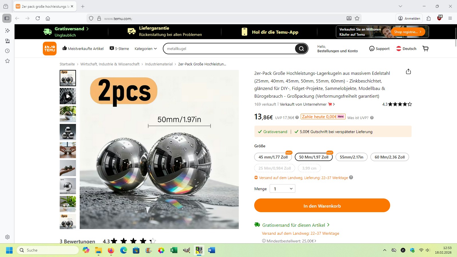 @ Dieter und Rbx: Danke für euren Kommentar... Inzwischen sind die TEMU-Teile für den Luftdruckschussapparat eingetroffen. Soweit passt alles wie ich es mir ausgedacht habe. Nur die bestellten 8 mm Stahlkugeln passen nicht ins Messingrohr, welches eigentlich auch 8 mm Innendurchmesser haben sollte. Hat es aber nicht, sind so um die 7.8 mm. Daher habe ich mir gleich 7.6 mm Stahlkugeln aus Wien bestellt. Die 0.2 mm Luft machen hoffentlich nicht allzu viel aus. Die Kugeln sollen ja auch nicht stecken bleiben im Lauf...