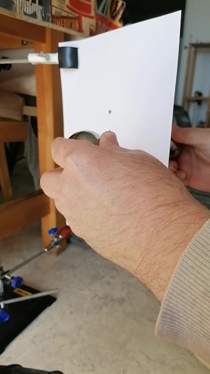 Das Foucaultsche Pendel fuchst deutlich mehr als erwartet. Nachdem das Senklot angekommen ist, konnte ich Testläufe starten. Dazu habe ich das Pendel mittels Metalldraht (Eisen, 0.2 mm) und Nagel an der oberen Türleiste fixiert (Pendellänge = ca. 2 m). Das erstmalige Auslenken geht dann auch noch einigermaßen gut vonstatten. Man muss nur einige Male probieren, bis das Pendel auch wirklich ohne Seitenschlag schwingt. Dies kann ich aber sehr gut am Schirm durch den eingesetzten Linienlaser überprüfen. So weit so gut... Kontrolliere ich dann aber das Pendel z.B. nach 10 Minten, so schwingt es nicht mehr in einer mittlerweile gedrehten Schwingungsebene, sondern fast immer auf einer Ellipsenbahn. So kann man dann natürlich die Drehung der Schwingungsebene nicht ermitteln. ChatGPT meinte, meine Drahtaufhängung sei nicht geeignet. Vorgeschlagen wurde eine Kugel an der das Pendel hängt, welche in einer Mulde mit flachen Seitenwänden sich frei drehen kann. Das probiere ich aus und habe mir dazu Messingkugeln bestellt. Eine weitere Punktlagerung setze ich auch gerade um und zwar mittels Stellring und zugespitzter M4-Schraube. Mal schauen, ob dies die extrem störenden Ellipsenbahnen eliminiert. Einen einzigen Testlauf habe ich so hinbekommen, dass das Pendel nach über 2300 Sekunden wirklich in einer Schwingungsebene pendelte und nicht eierte. Ob dies Zufall war zum Zeitpunkt der Beobachtung kann ich nicht sagen. Für diese eine "erfolgreiche" Messung kam ich nach 2463 sek auf 139 90°-Schrittmotordrehungen, um die Schwingungsebene wieder parallel zum LEGO-Arm zu bekommen. Daraus ergibt sich eine Winkelgeschwindigkeit des Foucaultpendels von 0.0053 °/sek. Der Sollwert beträgt hier in Graz 0.0031 °/sek. Wie gesagt, keine Ahnung ob diese Messung überhaupt als brauchbar zu klassifizieren ist. Die Drehrichtung (im Uhrzeigersinn) stimmte aber ;-) In den Weihnachtsferien werde ich eben anderen Pendellagerungen ausprobieren. Bin schon gespannt ob es eine Verbesserung darstellt. Falls jemand von euch eine Idee diesbezüglich hat, gerne her damit. Wünsche allen ein frohes Weihnachtsfest...