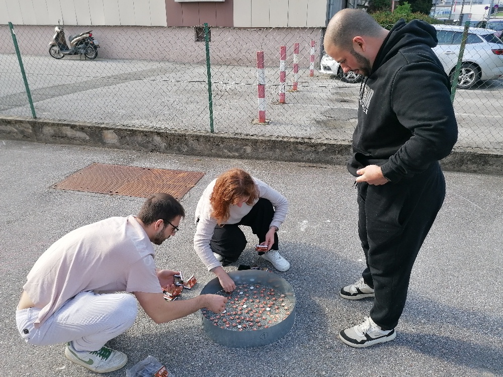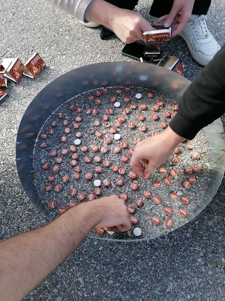 @Christoph: Dafür sind meine Selbstbau-Galvos viel zu langsam, leider... Mit Feuerwerkskörper wollte ich ja die atomare Kettenreaktion nachstellen/simulieren. Dazu habe ich mir übers Internet insgesamt 25 Packungen Rotáček-Feuerwirbel gekauft. Das Experiment konnte ich dann gestern durchführen, da mich meine beiden Söhne + Freundin besucht haben, denn fürs Filmen benötigte ich eben zusätzliche Hilfe. Ich hatte keinerlei Erfahrung, ob die Anzahl der Feuerwerksspiralen (insgesamt 125) und der gewählte Kreis mit Blechumrandung von mir passend gewählt wurde. Ich rechnete u.a. auch damit, dass die Kettenreaktion überhaupt nicht startet oder stoppt. Zum Glück klappte aber alles bestens, wenngleich ich von der enormen Rauch- und Hitzeentwicklung doch sehr überrascht war. Feuerwehr tanzte aber glücklicherweise nicht an... Gekostet hat mich der ganze Spaß ca. 50 Euro, aber das war es mir völlig wert. Danke nochmals an M. + A. und L. für deren tatkräftige Unterstützung. Mehr Informationen inkl. Video: https://stoppi-homemade-physics.de/kettenreaktion/