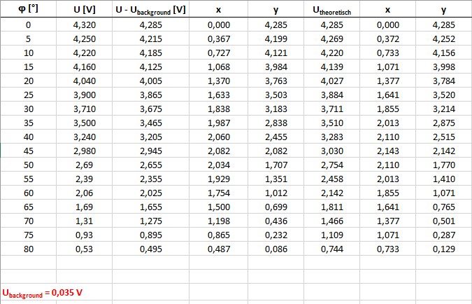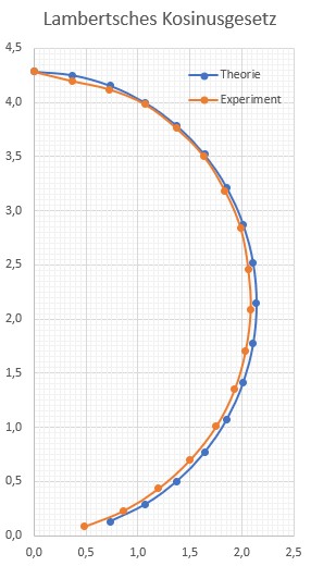 Anbei noch die experimentellen Ergebnisse zum Lambertschen Kosinusgesetz der diffusen Streuung. Die Übereinstimmung Theorie-Experiment ist ziemlich gut, bin sehr zufrieden damit...