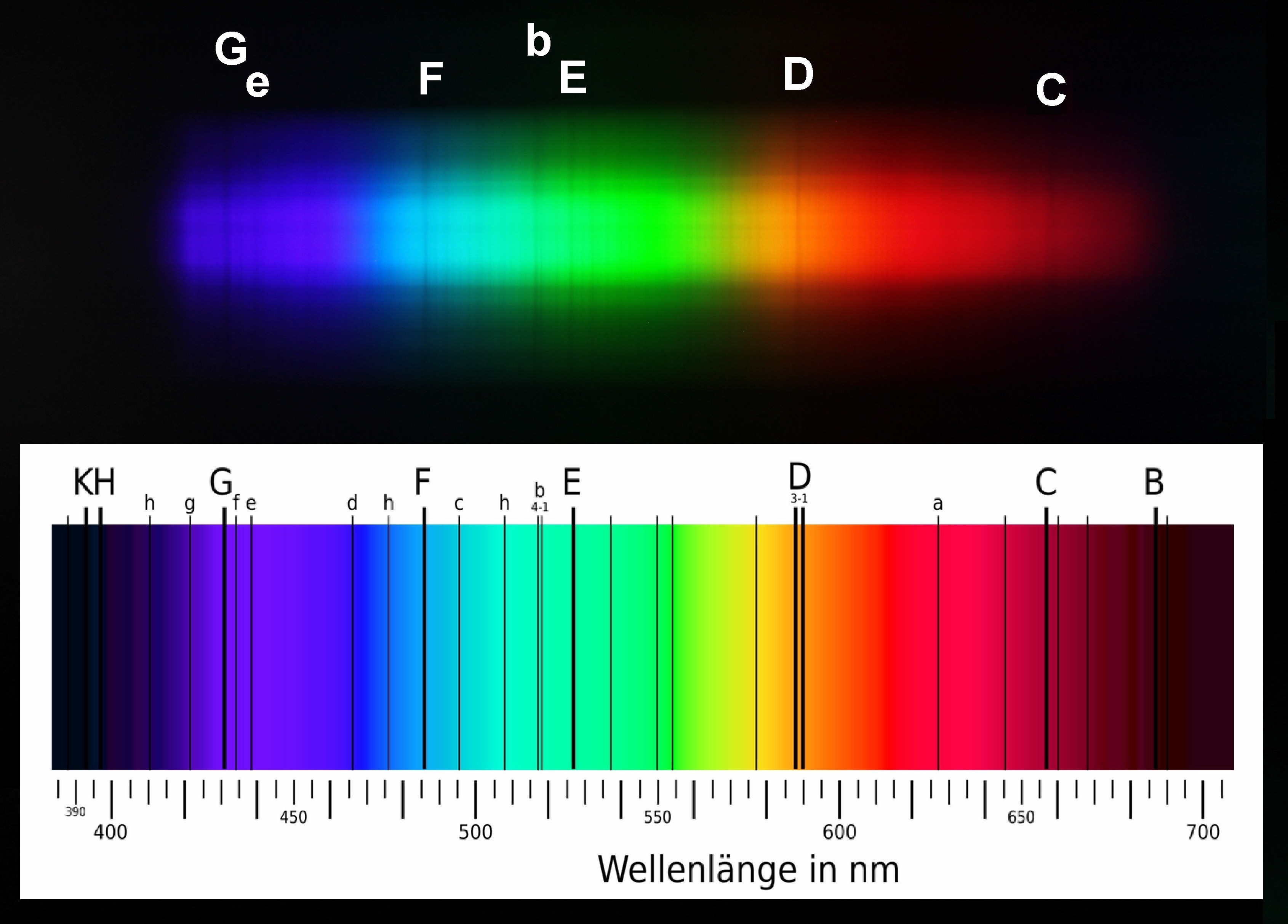 Christoph E. schrieb: > Richtet man das Spektroskop ca. im Winkel von 90° zur Sonne aus und > blickt schräg auf das Beugungsgitter, so erblickt man ein schönes, > kontinuierliches Sonnenspektrum. Schaut man genauer, so erkennt man > darin einzelne Absorptionslinien, die berühmten Fraunhoferlinien. Ich bin ja sehr positiv ueberrascht ueber die Aufloesung des Aufbaus. Ist auch ein sehr schoner Ansatz fuer Schueler, und vor allen Dingen Baumarkt-Physik.