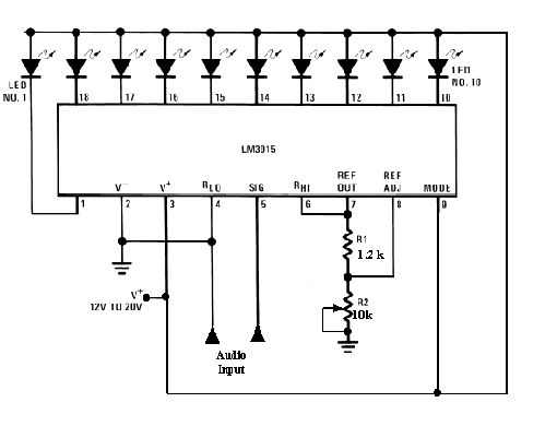 Hallo Ich habe die Schaltung im Bild aufgebaut. Was bei mir anders ist, ich habe PIN 2 nicht mit PIN 4 verbunden, (beides auf Masse gelegt), der R1 ist bei mir ein 220 OHM Widerstand und der R2 ein 250k Poti. Es funktioniert soweit alles eigentlich richtig, nur wenn ich den Poti runterdrehe und die letzten 2/3 LED noch leuchten fängt an die hinterste LED, die eigentlich nur bei vollem Ausschlag leuchten sollte, an zu flackern. Ich kann es mir nicht erklären. Habe mir schon viele verschiedene Schaltungen/Seiten angeguckt und auch das Datenblatt, finde aber keine Lösung wie ich das flackern wegbekommen könnte. Vielleicht die falschen Widerstände. Den 220 OHM Widerstand habe ich mir so errechnet: Ich brauche 1,25V als Ref 30 mA für die LED´s und habe ein Netzteil mit 9V also... R= UB-URef/I R= 9V-1,25V/0,03mA R= 258,3 OHM Ich weiß ich habe einen kleineren Widerstand drin, aber habe schon viele verschiedene Widerstände ausprobiert, doch keiner hat bewirkt das beim runterdrehen des Poti´s die letzte LED aufhört zu flackern. Danke schon mal für jede Hilfe :)