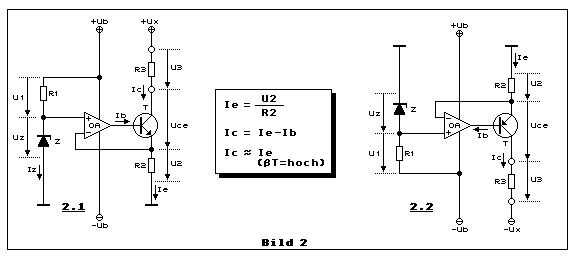 Aber die größe des Shunts bestimmt doch auch den fließenden Strom, also beliebig aussuchen kann ich den ja nicht.. und die 2A fließen ja halt ebene auch durch ihn. oder verstehe ich da was falsch? Ich habe grob die Schaltung hochgeladen, die es dann werden könnte. Rs würde ja dann dem Shunt entsprechen. (Es fehlen noch Widerstände zwischen OP-und Rs und OPoout und Q) Bei der Auswahl der Bauteile hab ich noch Schwierigkeiten, kann da jemand aushelfen? Für die fehlenden Widerstände würde ich 10k und 1k annehmen, Rs würde dann so dimensioniert, dass die Spannung = der Spannung über der Z-Diode ist geteilt durch die gewünschte Stromstärke. Ist das soweit richtig? @Jens Kühlung ist klar. teuer insofern, dass ein Labornetzteil, dass eine vernünftige Strombegrenzung hat teurer als eine kleine Schaltung aus Op und Transistor ist. die schaltung wird später öfter gebraucht, deswegen würde das Netzteil dann permanent für diesen zweck gebraucht..