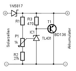 Hallo, ich habe testweise die Schaltung im Bild nachgebaut. P1 hab ich rausgelassen, R1 mit 22K und R2 mit 27K gesteckt. Somit müsste sich eine Ausgangsspanung von ca. 4,5V am Ausgang einstellen. Nun ist es aber so, dass ab ca. 5V Eingangsspannung über ein Netzteil, der Strom stark ansteigt und dabei die Diode und der Transistor ziemlich heiß werden. Dabei ist es egal ob am Ausgang der Schaltung ein Akku anliegt oder nicht. Hat jemand eine Idee vorher das kommt ? Ich wollte eine "einfache" Schaltung mit der ich über eine Solarzelle 6V/70mA meinen Akku mit 4,5V Ladeschlussspannung lade. Gruss