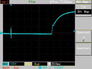 Stefan U. schrieb: > MAP004.BMP: Ohne Last. Ich sehe einen Peak mit etwas mehr als 4V in > positiver und negativer Richtung. Danach steigt die Spannung ohne > weitere Peaks innerhalb von 80ms bis zum Sollwert an. Das wären also -4V: Auf Grund der Diode am Ausgang halte ich das für Physikalisch nicht möglich (mit ca 0.5-1ms Dauer. Gruß Anja