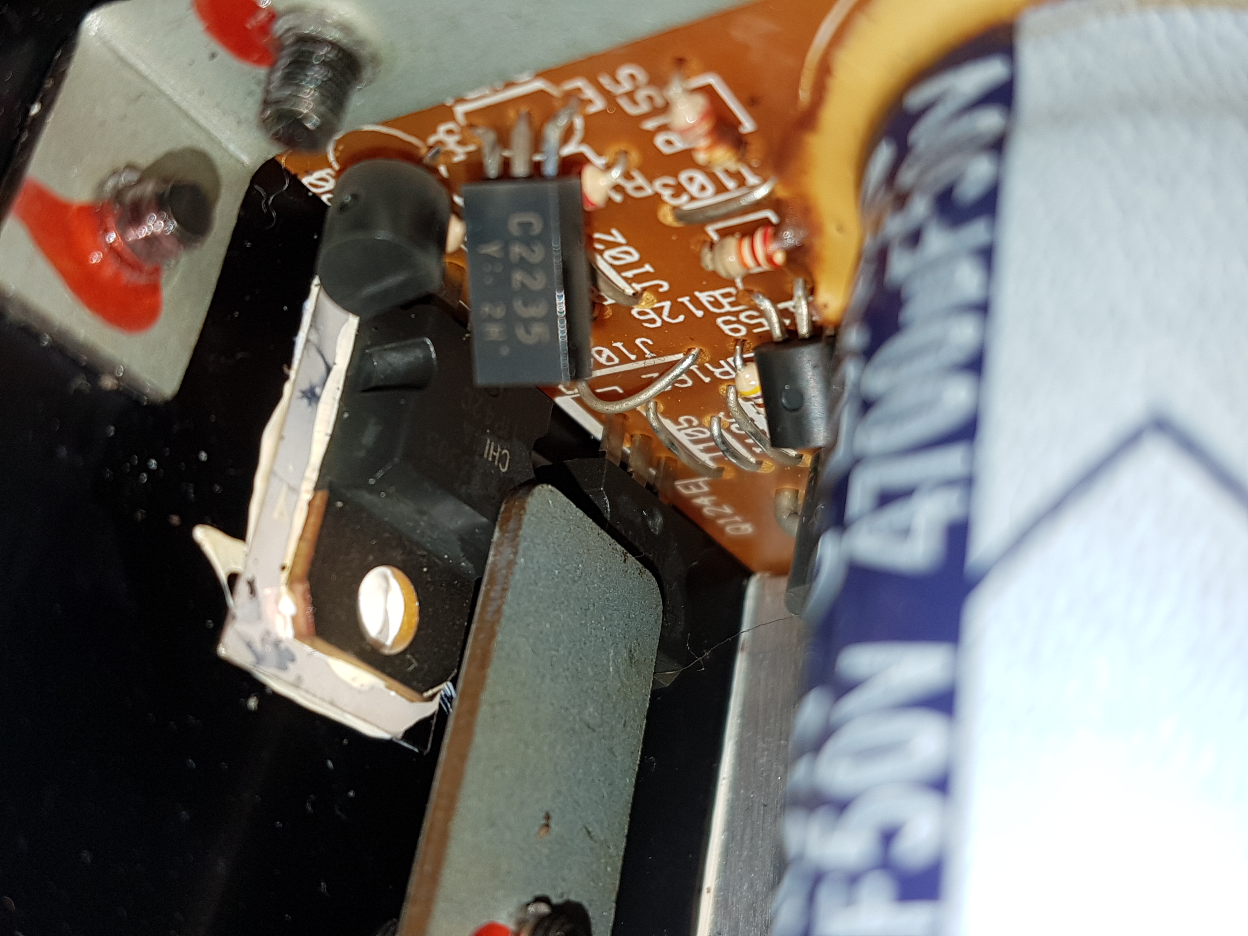 Frankl schrieb: > Netzteil Kondensator Ich sehe leider keine Beschädigung an den Kondensatoren. Jedoch sehe ich zwei Stellen die nach einer Überhitzung aussehen (siehe fotos)