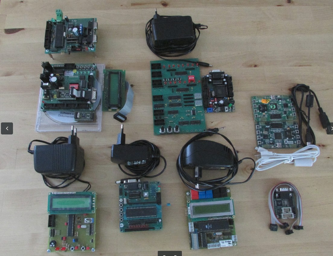 Hallo, habe diverse AVR Testboards abzugeben, für Anfänger geignet, zu alle Boards gibt es Dokumentation (Mindestens Schaltplan). --> AVR_Atmega_8_LCD_IC2 - Interessantes Board hier paar Daten: - 4 Taster und 4 LED’s über PCA9554 I2C - HD44780 Display, angesteuert über PCA9555 I2C Portbaustein - Adresse des PCA9554 und PCA9555 einstellbar - Freie Portbits des PCA9555 stehen als Eingänge zur Verfügung - I2C Port extern herausgeführt - Motoransteuerung über L293D Motortreiber - Anschluss für ISP und RS232 --- Ein zusätzliches atmega8 modul ist dabei --> AVR_Atmega_8_LCD - Board für Atmega 8 mit LCD, 2 Taster, 2 LEDs etc. --> AVR_Atmega_8515 - LCD Port, 8 LEDS, 4 Taster etc. --> AVR_Ctrl_Board_Atmega_32 - Auch interessantes Board, jede Menge infos in Web: - 5 Taster und 8 LED’s - HD44780 Display - 1 Relay - Infrarot - Treiber-IC (ULN2803) - 1-Wire-Temperatursensor - USW. --> AVR_Testboard_fuer_AT89C51AC3 -- Extra Platine dabei, Infos, Schaltpläne usw. alles dabei. --> Xmega_Xplain -- Testboard für Atxmega128A1 mit LUFA Firmware drauf, Board wird als AVRISPmkII erkannt und das Atxmega kann ohne weiteres unter AVRStudio 4.9 und AVRStudio 6 programmiert werden. --> AVR_ISP_mk_Seriell -- Original Atmel AVRISPmk Seriell. Preise: Die Boards AVR Ctrl und Atmega 8 mit IC2 wurde sagen jeweils 20 Euro, der Rest denke jeweils 10 Euro zzgl. Versand. Bei Interesse bitte PN. Bei mehrere Positionen einfach Preisvorstellung, wenn jemand alles haben will, denke 60 Euro wäre ein gute Preis für alles oder? Gruß