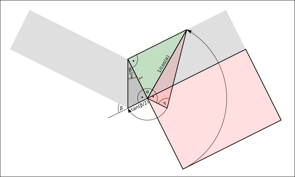 Die Winkel α und β seien nach deinen Vorgaben wie folgt definiert: - beide Bretter stehen fast aufrecht im Winkel von α=80° - am Boden stehen sie auch um β=10° verdreht zur Flucht Gesucht ist der Winkel γ, in dem die Bretter abgesägt werden müssen. Lösung: