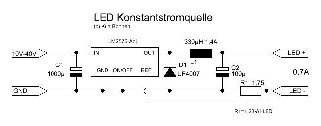 Philipp Stange schrieb: > Ich > suche jetzt schon seit einigen Tagen nach einer geeigneten schaltung > kann aber nichts finden was meinen Ansprüchen zu 100%entspricht. und wie sind deine Ansprüche? suche dir einfach den Passenden IC für deine Ansprüche und schau im Datenblatt nach einer Beispielschaltung http://www.linear.com/products/led_driver_ics Oder kaufe gleich fix und fertig http://www.leds.de/LED-Zubehoer/Stromquellen/Meanwell-LDD-LW-Konstantstromquelle-LDD-700LW-700mA.html
