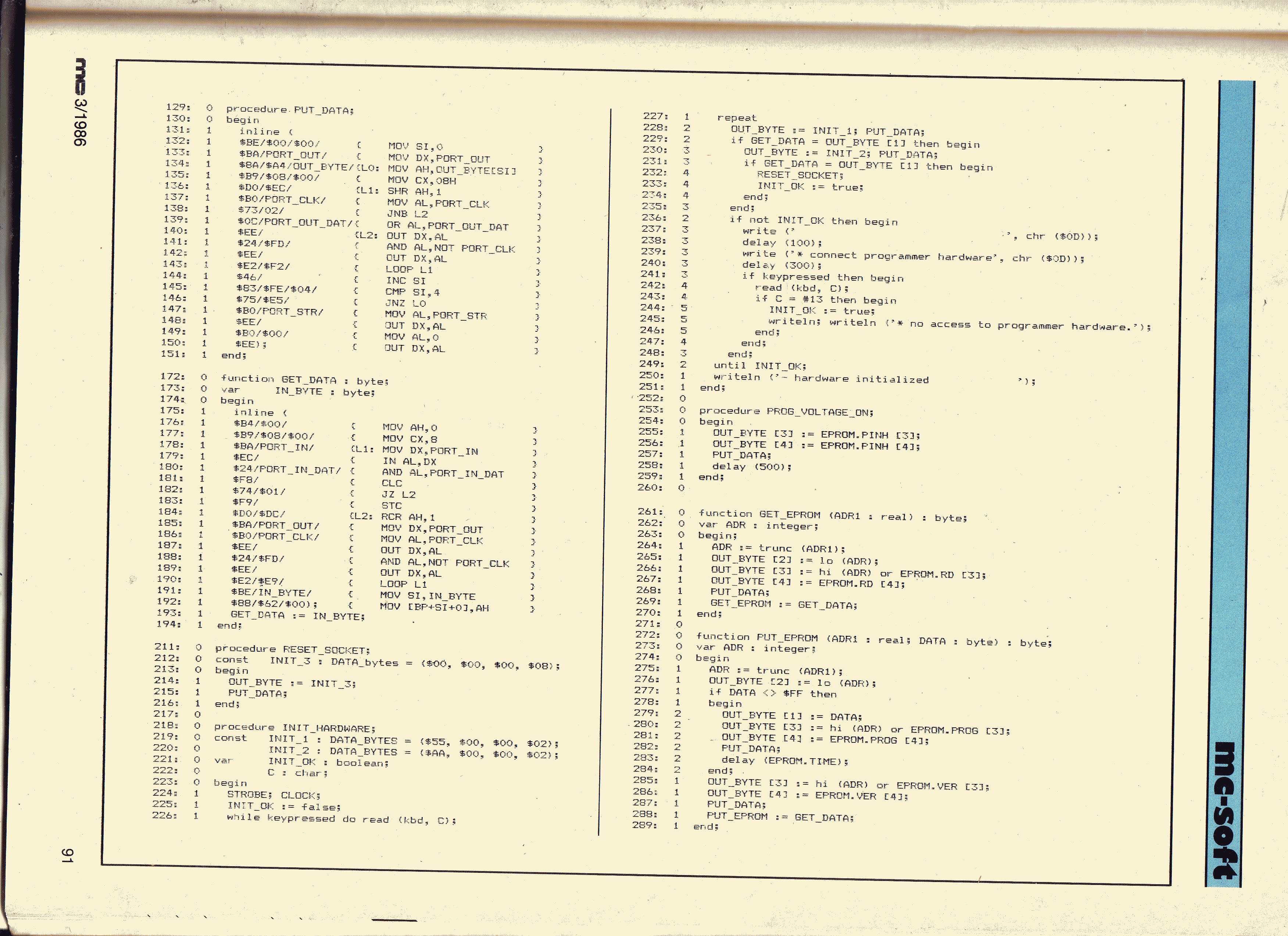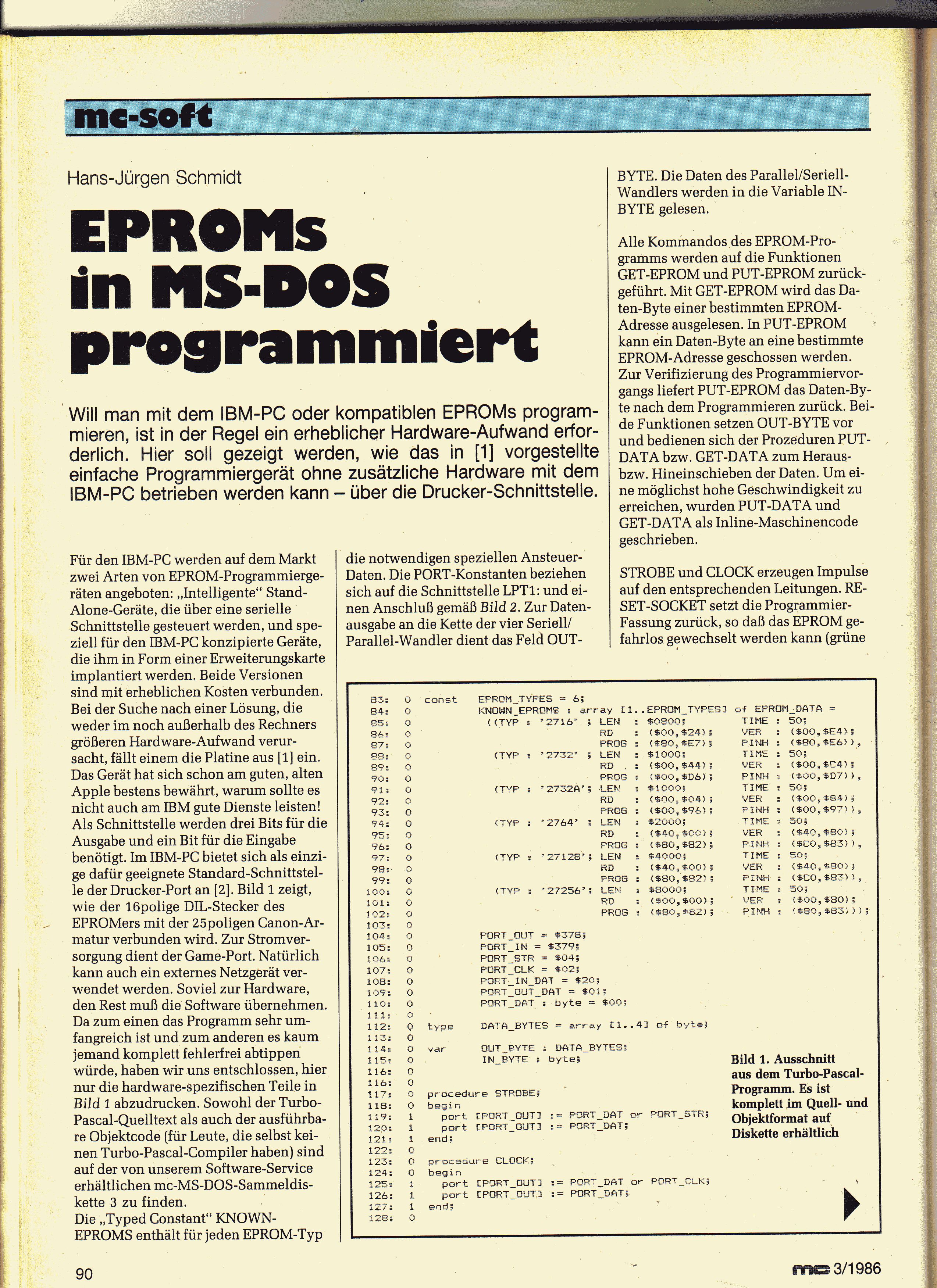 Hallo Hermann-Josef, ich kann zwar nicht mit der Angabe der Heftausgabe dienen, aber bei dem EPROM-Brenner dürfte es sich wohl um die Entwicklung von Peter Seng handeln. Der folgende Verweis führt zu einer Archivseite mit allen Unterlagen nebst Software für die MSDOS-Version des Brenners. Allerdings enthalten die Handbücher nur den Schalt- und Bestückungsplan, nicht aber das Platinenlayout. Dieses wurde wohl nur in der MC veröffentlicht. http://archive2005.seng.de/mp.html Ich besitze selbst noch so ein Teil, welches es auch immer noch tut. Für den Betrieb ist aber auch ein entsprechend langsamer Rechner aus der Zeit nötig. Da ich die Platine damals selbst gefertigt habe, müsste sich bei mir eigentlich auch noch irgendwo die Layoutvorlage finden lassen. Bei Bedarf kann ich jedenfalls mal nachschauen. Mit besten Grüßen Murmelchen