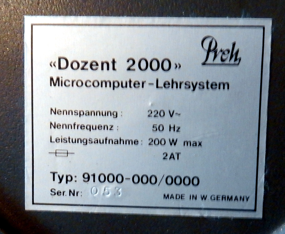 hallo Kollegen, k.a. ob noch relevant. Der "Dozent 2000" das wurde ganz sicher von Preh Bad Neustadt hergestellt. Ob es dort noch Unterlagen gibt käme auf den Versuch an. Ich habe während meiner Ausbildung bei Preh vor ca. 20 Jahren noch auf diesem Gerät geübt. Der damalige Ausbilder ist noch in der Firma. Gruß
