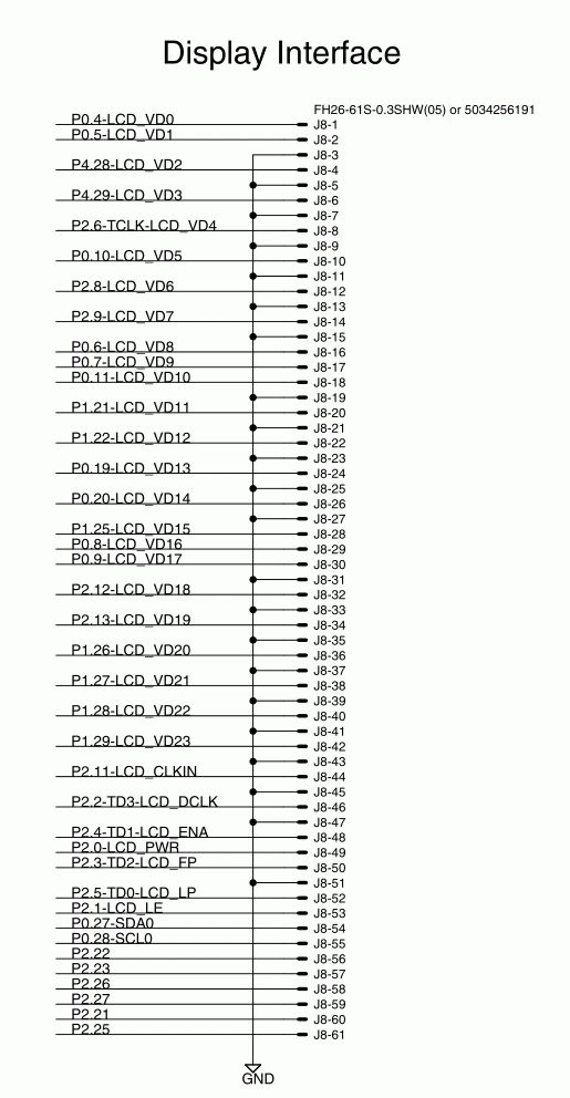 so einen Wobbler brauche ich zwar nicht, habe aber noch ein LPC4088 Quickstart Board von Embedded Artists. @W.S.: passt das Display an dieses Board? Das hat einen 61 pol. FPC mit 0,3mm Pitch, Belegung habe ich mal angehängt. Dir 40 pol RGB scheint ein Standard zu sein, diese 61 pol. auch? Ansonsten wäre das QSB4088 doch schon ein passender Controller, ich glaube nicht das man das viel günstiger als 70€ selber bauen kann.