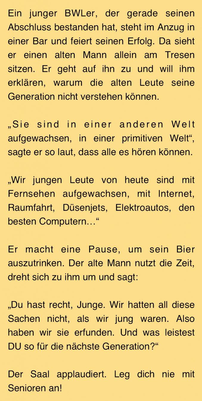 Markus M. schrieb: > BWLer_und_Rentner.gif Leider kann ich nur einen +Punkt vergeben, sonst wären es mehr geworden. Gruß Thomas.