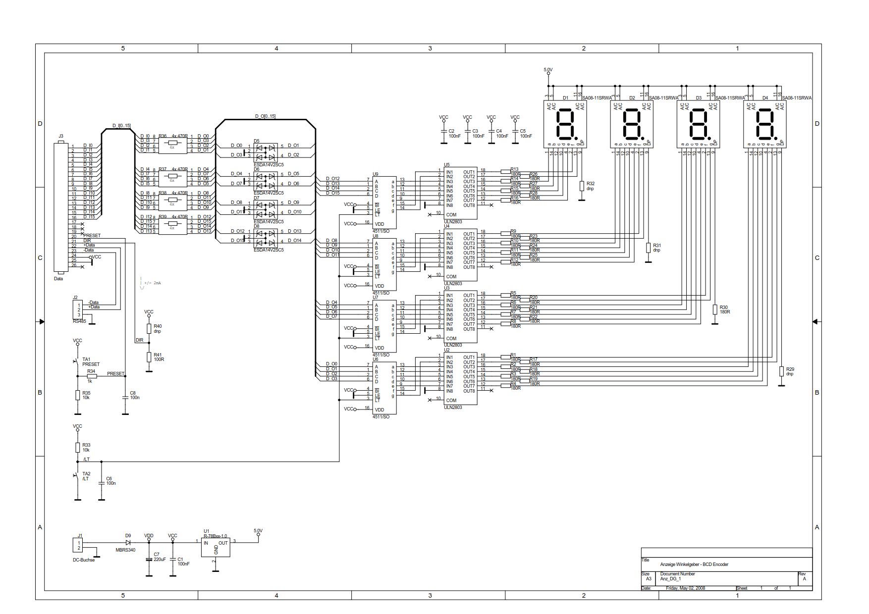 Biete robusten Multi-Turn Absolutwert Dreh-Encoder CE-100-M inklusive Selbstbau BCD-Anzeige (kein Multiplex, also voll Kameratauglich). Der Encoder ist programmierbar und derzeit auf die Ausgabe von 0...359.9° im BCD-Format parametriert, als Peilanzeige. Infos zum Encoder beim Hersteller: http://www.tr-electronic.de/service/downloads/betriebsanleitungen/drehgeber-und-lineargeber.html VB: 125,- EUR inkl. Versand Bei Interesse bitte PN.