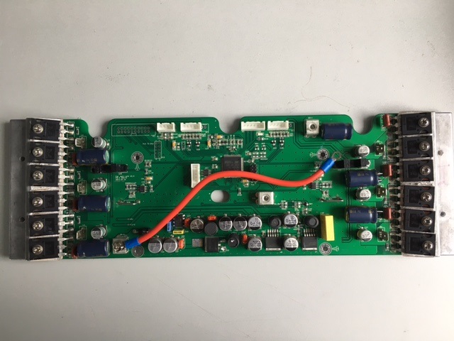 Hallo, ich versuche gerade einem Chegway wieder leben einzuhauchen. Das Problem ist, das der Gute Chegway während der Fahrt den Fahrer qualmend abgeschmissen hat, Anbei seht Ihr den Fahrtenregler. Alle Elkos sind in Rauch aufgegangen und eine Schottkydiode meinte auch beidseitig durchzulassen. Soweit die Geschichte. Ich habe jetzt alles erneuert,bis auf das kleine IC auf der Unterseite mit der Beizeichnung an der Platine Q54 PWM_Driver. Da der kleine Käfer komplett verbrannt war, konnte ich keine Typenbezeichnung ablesen. Hat einer von Euch eine Idee ? Auf einer Seite sind alle Kontakte verbunden. Grüße und Danke Ralph