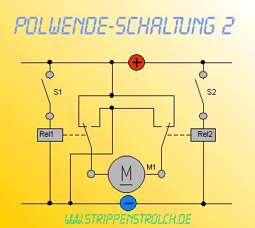 Eine kompliziertere Schaltung zur Polwendung habe ich noch nicht gesehen. Eigentlich fehlt noch ein Relais in Reihe, um den Strom in die andere Richtung auch unterbrechen zu können ... Freitag. Oder? Gruß Jobst