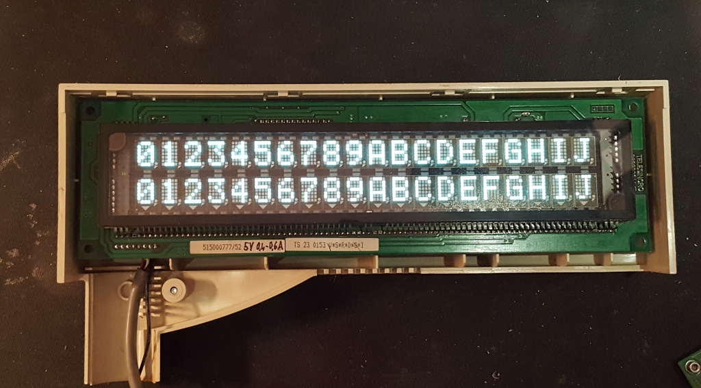 Biete ein großes VFD mit 2x20 Zeichen. Zeichenhöhe ca 11mm. Anzeige ca 25 x 5cm. Versorgung mit 5V. Zeichen leuchten gleichmäßig, keine verblassten Stellen. Ansteuerung seriell (RS232). Gegen Gebot per PN. Versand mit Hermes für 3,70 €.
