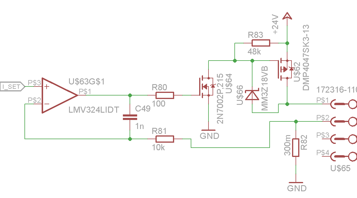 Hallo, ich sitze gerade vor folgendem Problem: Ich möchte den Strom einer 24V Spannungsquelle begrenzen. Ich habe den Artikel über die Konstantstromquelle gelesen und sie für meine Anwendung leicht abgeändert. Der MOSFET kann leider nicht direkt vor dem Shunt sitzen, da der Massebezung nicht getrennt werden soll. Aus diesem Grund musste ich eine Kombination aus P- und N-MOSFET verwenden. Die Z-Diode an dem P-MOSFET hat eine Spannung von 18V (+-5%). Wird die Schaltung so funktionieren ? Der Pullup des P-MOSFET habe ich mit 48k recht groß gewählt, da ich die Verlustleistung so gering wie möglich halten will. Die Genauigkeit der Stromregelung muss nicht besonderst gut sein. Gruß Stefan