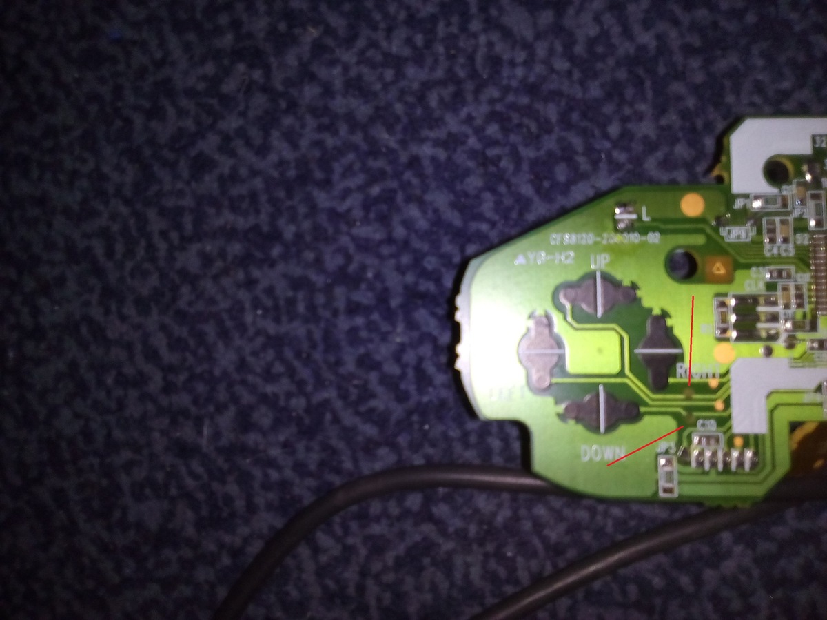 Wie wirkt sich dein Fehler denn aus? Sollte nur "rauf" und "runter" spinnen, könnte es mit den Punkten zu tun haben. Wahrscheinlicher ist aber Verschmutzung der Pads des Steuerkreuzes. Ich würde einmal mit einem Wattestäbchen die vier dunklen Blöcke abstauben und auch das Gegenstück aus Plastik. Erstmal ganz ohne Flüssigkeiten, im besten Fall ist es festgedrückter Staub. Wenn das nichts bringt auch mal mit Isopropanol versuchen.