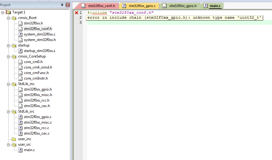 Daniel V. schrieb: > Mit der Standardlibary gehst Du wie folgt vor: Habe das genau so nachgemacht und jetzt kommt die im Bild angezeigte Fehlermeldung, dass er uint32 nicht kennt. Wie kann ich das beheben?
